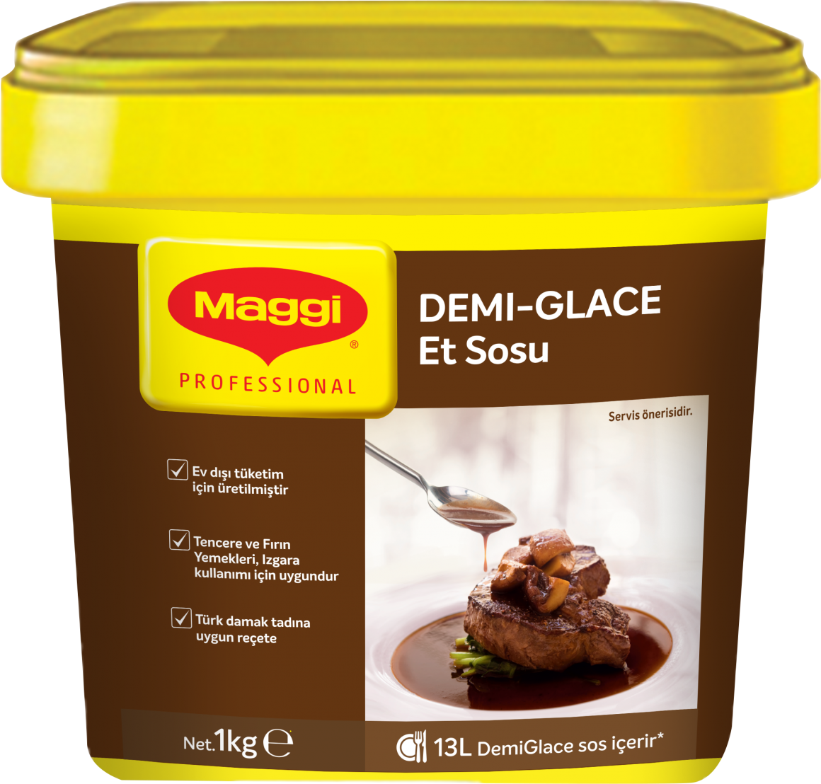 Et yemekleri, yeni Maggi Professional Demi Glace Sos ile şimdi daha lezzetli. Nestlé Professional’ın uzun yıllara dayanan global ve lokal tecrübesiyle hazırladığı sos, mükemmel et sosu hazırlamanın en pratik yolunu sunuyor. Kusursuz et lezzetinin yanı sıra enerji ve zaman tasarrufu da sağlayan sosu tercih edenler, tencere ve fırın yemekleri için birçok farklı et sosu hazırlayabilme imkanı yakalıyor.