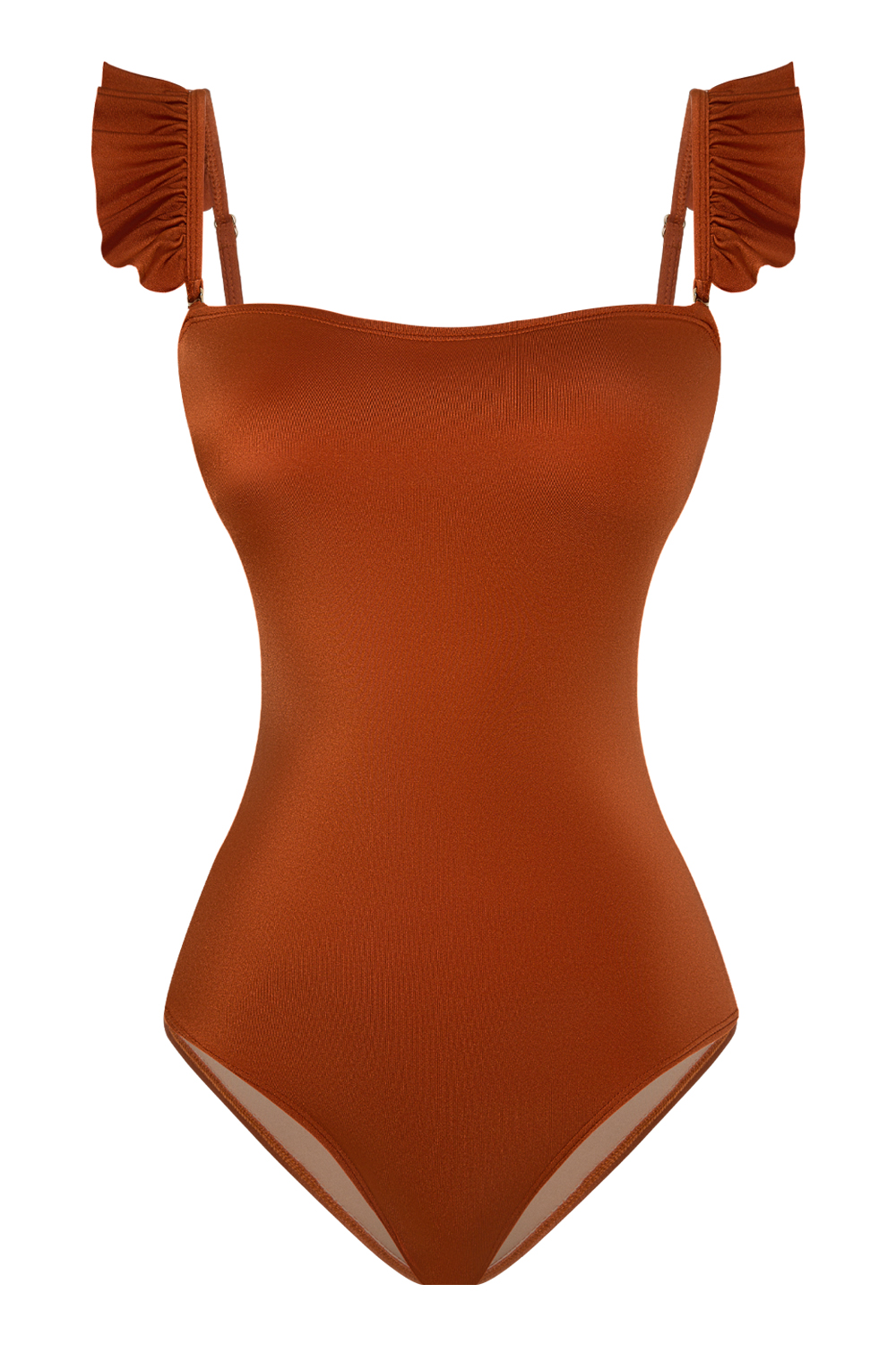 Geçtiğimiz yaz taş detaylı tasarımlarıyla öne çıkan Burcu Erken, bu yılki plaj koleksiyonu Modern Senfoni ile plajda modern şehir esintileri yaratmayı hedeflemiş. Kaliteden ödün vermeyen kumaş seçimleri ve rahat kalıpları ise markanın vazgeçilmezleri arasında. Bu yıl özel dikim tekniği ile mayo ve bikinilerin vücutta daha sabit kalması sağlanmış. Erken, ‘Kullandığımız ananas ve çiçek desenli kumaşların etkisiyle günlük hayatta etek ve pantolonla da kombinlenecek ürünler tasarladık’ diyor.