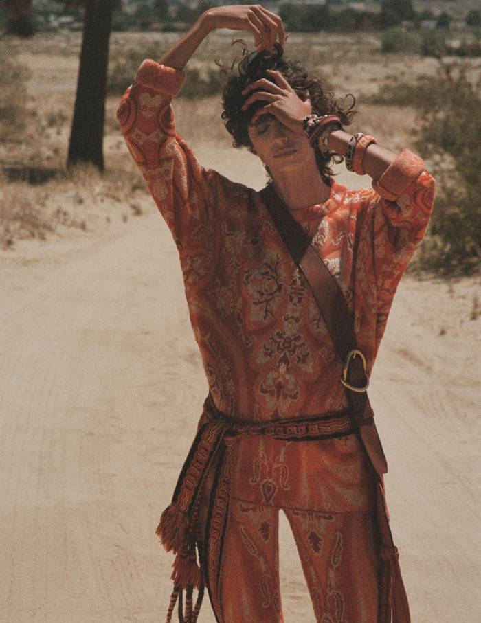 Bir Corvette ile çöle gelen ünlü modeller Mica Arganaraz ve Sam Mallos, idealizm ve bağlantının anlarını yansıtan giysiler içinde, şehirden uzakta, erkeklerin otoritesinin olmadığı ve vahşi güce sahip doğada kamera karşısına geçiyor. Görüntülerdeki her şey zaman ve mekan tanımından uzaklaşarak, Etro’nun göçebe kişiliğini zorlayıcı bir ifade buluyor. Geçmiş mi gelecek mi, oldu mu, olacak mı? Belirtmek faydasız, sınıflandırmak anlamsız. Önemli olan ondan yayılan huzur: bir sükûnet mesajı ve gün batımının yakıcı ışığıyla ısınan, elle tutulur bir arzuyla renklendirilmiş dinginlik.