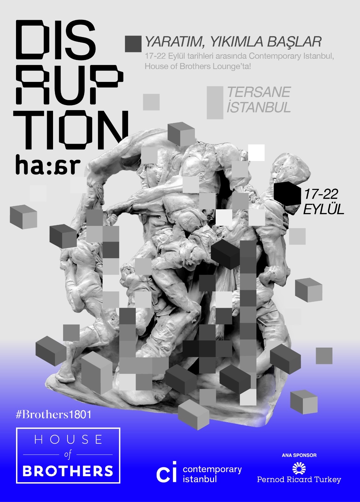 17 – 22 Eylül tarihlerinde 17’incisi gerçekleştirilecek Contemporary Istanbul’da bu yıl da yerini alan House of Brothers Lounge, bu kez Hande Şekerciler ve Arda Yalkın’dan oluşan ha:ar sanatçı ikilisini ağırlıyor. İkili, sanat, makine ve yapay zeka ilişkisini tartışmaya açarak, modern teknolojinin sanat kavramını kökünden değiştirme potansiyelini masaya yatırıyor. Contemporary Istanbul partnerleri arasında yer alan Pernod Ricard Türkiye, House of Brothers Lounge’da sergilenecek olan “Disruption” heykel-performansının da ana sponsorluğunu üstleniyor.