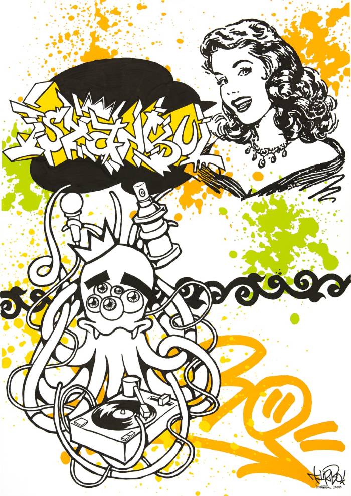 Türkiye’de grafitinin ilk temsilcisi olan Turbo, bu sergisinde İstanbul’un altını üstüne getiriyor. Kenti, sadece toprağın üstündekilerle değil suyun altındakilerle de dillendiriyor.