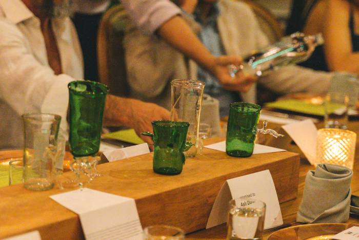 Çağdaş cam sanatçısı Derya Geylani’nin W İstanbul iş birliği ile tasarladığı geri dönüştürülebilir bardak tasarımları da bu kutlama yemeğinde birlikte sunuldu. W İstanbul ikramlarında kullanılan şişelerden dönüştürülerek üretilen bardaklar, şehrin merkezine gizlenmiş̧ Secret Garden’dan ilham alan fonksiyonel sanat nesneleri olarak; tat, koku, renk ve dokunma duyularını birbirleri için birer metafor olarak kullanıldı. Geylani’nin W İstanbul’da özel olarak sergilemeye devam edeceği sınırlı sayıda tasarladığı bardakların yanı sıra daha fazla tüketmeden üretilerek W İstanbul outletlerinde de özel olarak kullanılması planlanıyor.