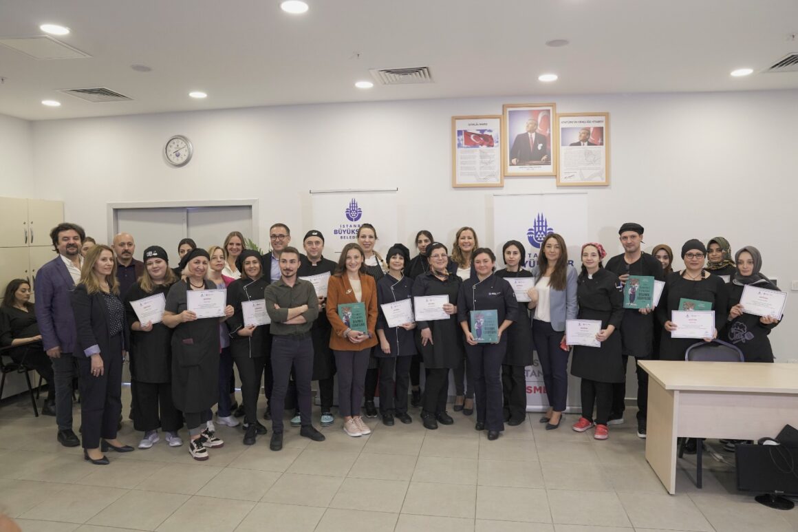 Yapılan konuşmaların ardından, eğitimi başarıyla tamamlayan katılımcılara sertifikaları verildi. Katılımcılar, sertifikalarını; İBB Başkan Danışmanı Yiğit Oğuz Duman, İBB Genel Sekreter Yardımcısı Zeynep Neyza Akçabay ve Enstitü İstanbul İSMEK Koordinatörü Dr. Canan Aratemür Çimen’in elinden aldı.