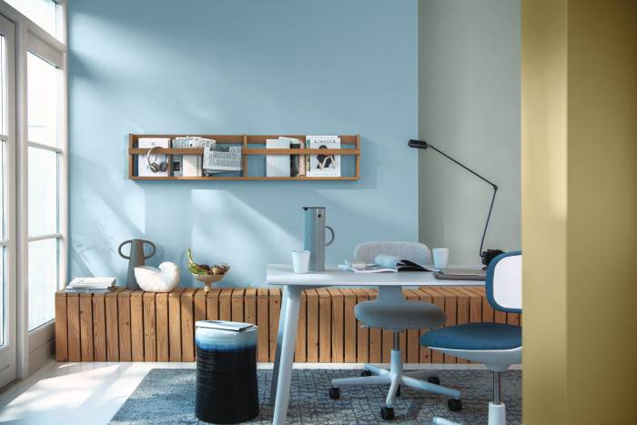 Gelgitlerden, dalgalardan ve dünyanın doğal ritimlerinden ilham alan Deniz paleti, süreklilik ve denge hissi yaratmaya yardımcı olur. Deniz kıyısından ilham alan yumuşak, akıcı tonlardan oluşan – kabuk pembesi, çakıl grisi, deniz mavisi gibi tonlara sahip Deniz paleti, Marshall Yılın Rengi Başak Esintisi ile birlikte kullanıldığında, denge duygusu olan bir alan yaratmak için ideal.