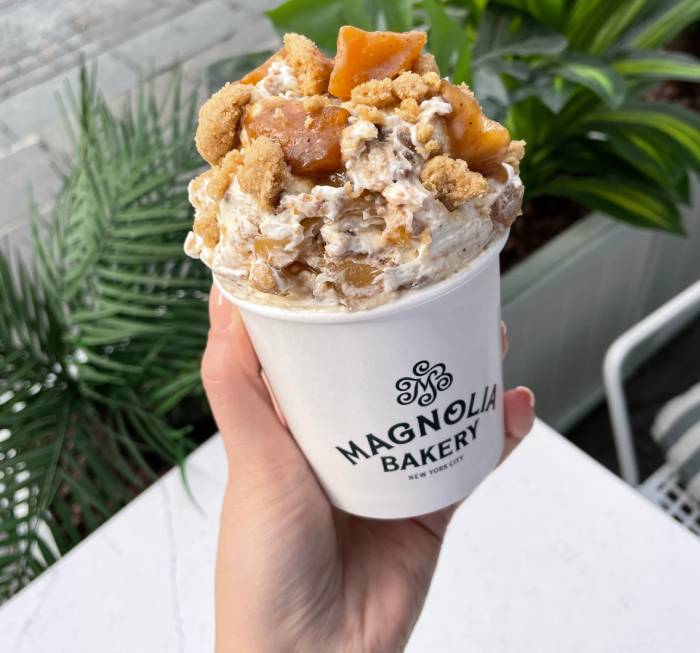 Birbirinden taze ve lezzetli tatlılarıyla beğeni toplayan Magnolia Bakery, Kasım ayına özel lezzeti Apple Crisp Pudding ile ikonik Banana Puding’e eşsiz bir yorum katıyor. Elmalı turta dolgusunun vanilyalı puding, tarçınlı kırıntılar ve vanilyalı wafers ile harmanlandığı lezzet, elma aromasını pudingin her kaşığında hissettiriyor.