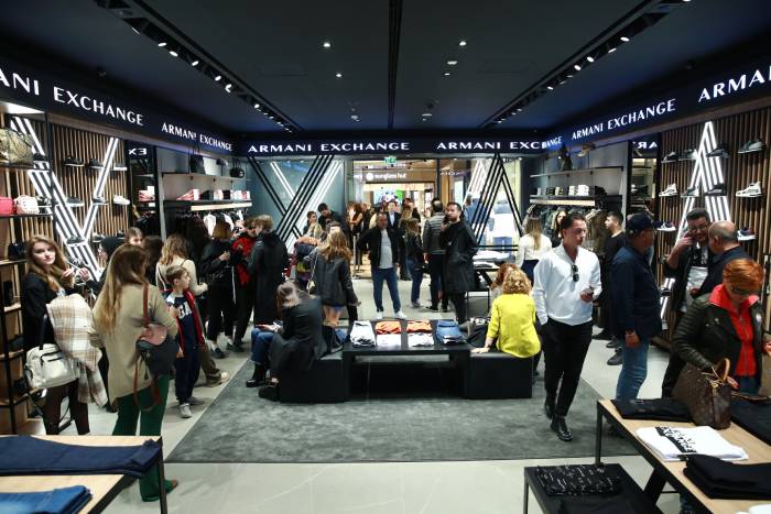Armani’nin minimalist ve iddialı tasarım dilinin yansıtıldığı mağazalarda, erkek ve kadın kıyafet koleksiyonlarının yanı sıra, ayakkabı, çanta ve aksesuar koleksiyonları da yer alıyor. 1991 yılında doğan, Giorgio Armani Group portföyündeki markaların en dinamiği ve gençlerin dünyasıyla her zaman uyum içinde olan A|X Armani Exchange, mağaza içerisinde yer alan özel led ekran kullanımları ve ışıklandırmalarıyla da bu ruhu yansıtıyor.