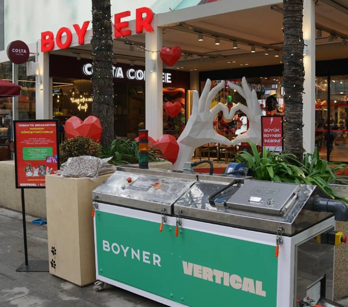 Boyner, Vertical ve Opsis Çevre Teknolojileri iş birliği ile hayvan dostlarımıza destek olmak amacıyla atıkları doğru şekilde değerlendirerek anlamlı bir projeye imza attı. Kadıköy bölgesinde yer alan restoranların tabaklarında kalan gıda atıklarını toplayarak özel bir mama dönüştürme makinesiyle mamaya dönüştüren Boyner, Vertical ve Opsis, bu mamaları Kadıköy Hayvan Bakımevi’ndeki patili dostlarımıza ulaştırıyor. Boyner müşterileri de alışverişine 40 TL karşılığında Askıda Mama paketi ekleyerek bu projeye destek olabiliyor.