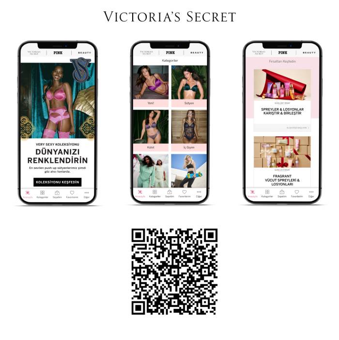 Hızlı ve kolay alışveriş keyfi şimdi Victoria’s Secret Türkiye mobil uygulamasında! Uygulamayı App Store ve Google Play’den indirmek için link’e tıklayın ya da QR kodunu okutun.