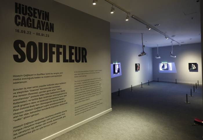 Yeni medya aracılığıyla beden ve modern antropolojiye odaklanan Hüseyin Çağlayan’ın “Souffleur” sergisi; popüler kültürde sıkça rastlanan ve eleştirilen “özenme” kavramından esinlenen Pre-tension (Özenme); günden güne artan “dijital soyutlanmayı” protesto eden Fake Celebrations (Sahte Kutlamalar), tarihte Batı tarafından sömürgeleştirilmiş etnik grupların dans ve bedensel hareketlerini konu alan Post-Colonial Body (Sömürgecilik Sonrası Beden) ve kimlik, bedensizlik, göç, metamorfoz gibi bir çok konuyu içeren, sanatçının tasarlayıp yönettiği Gravity Fatigue (Yerçekimi Yorgunluğu) adlı performans filmi ile birlikte dört eser serisinden oluşuyor.