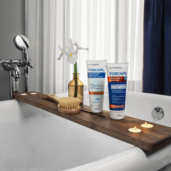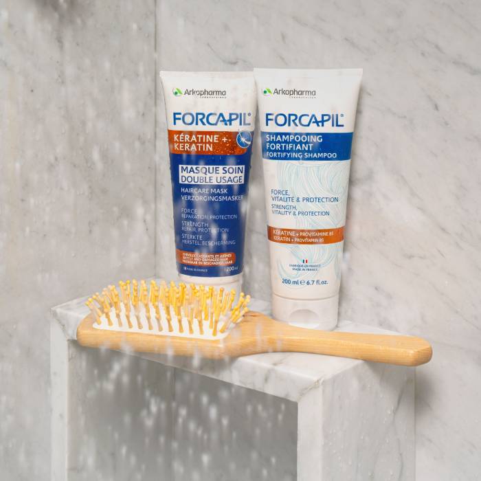 Bitkisel keratin içeren Forcapil Keratin Maske ise, saçta kısa tutulursa saç kremi, daha uzun bekletilirse saç maskesi olarak kullanılabiliyor. Bitkisel keratin, Jojoba yağı, B5 &B6 vitaminleri, biotin ve çinko içeren formülü, saç telinin onarılmasına, beslenmesine ve korunmasına, saçın kuvvetlenmesi ve direncinin artmasına, nemlenmesine, dolgunluk kazanmasına yardımcı oluyor. Yıpranmış saçların onarımı için düzenli kullanım önemli. Kremin, her yıkamada tüm saça şampuan sonrası uygulanması ve 1-2 dakika bekleterek durulanması gerekiyor. Çok yıpranmış saçlar ise 3 ila 5 dakika arası bekleterek durulayabilir.