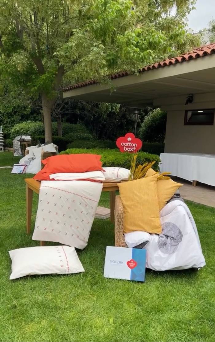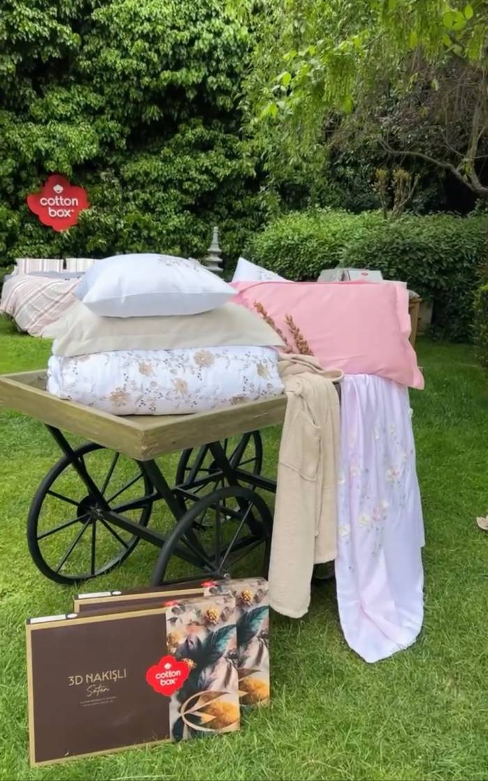 Hem toplantı salonu hem de otelin bahçesi Cottonbox’ın ürünleriyle süslendiği için tasarımları dokunarak yakından inceleme şansına sahip olduk. Sürdürülebilirliği tasarımın merkezine alan markanın geri dönüşümden elde edilen ve üretiminde daha az su kullanılan Nature nevresim serisi, yumuşak dokuları ve sade tasarımlarıyla dikkat çekiyordu. Minimal renklerin ve pastel tonların ön plana çıkarıldığı seride vizon, mavi, sarı ve lacivert gibi birçok renk seçeneği mevcut. Ürünleri incelerken markanın yeniliklerinden keten nevresim takımlarının ise serin tutma özelliği sayesinde yaz aylarında da kullanıcılara rahat bir uyku deneyimi sunduğunu öğrendik. Üstelik sade ve zarif modelleriyle her yatak odasını tamamlayacak renk ve dokularda sunuluyor.