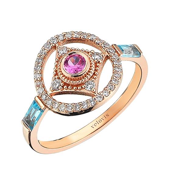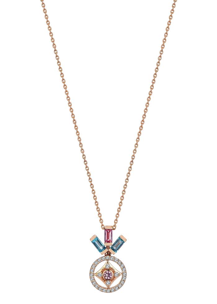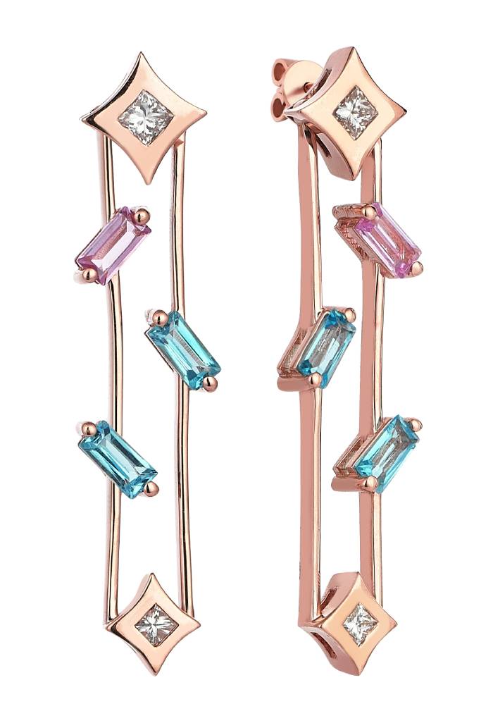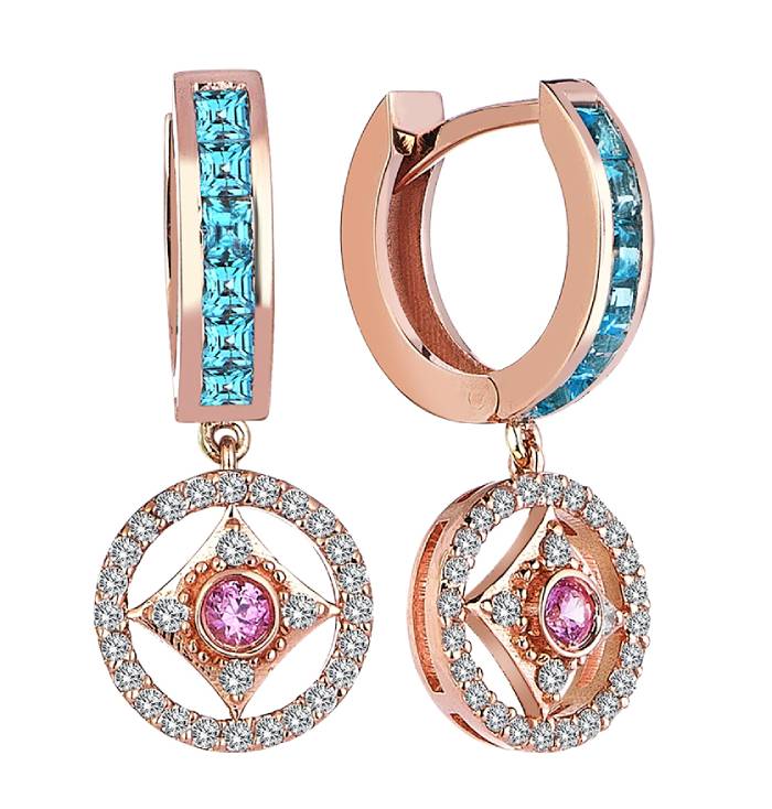 Pembe safir, mavi topaz ve pırlantanın birlikteliği Lilly koleksiyonu ile gün batımının en büyüleyici anlarını tasarım harikası mücevherlere dönüştürüyor.