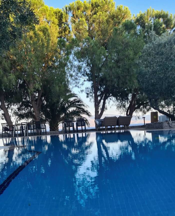 Idaolea Assos’un dekorasyonunda doğal dokuyla uyumlu objeler ve sanat eserleri tercih edilmiş. Denizi tercih etmeyenler için havuz seçeneği de mevcut.