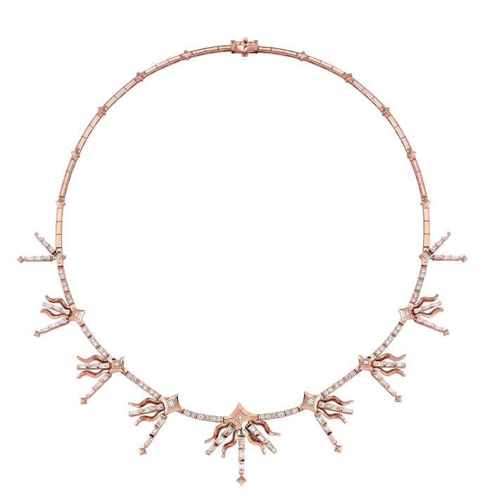 Kreatif çizgilere sahip mücevherlerin birçoğunda, her kadının kendine özgü ışığını simgeleyen dört köşeli yıldız figürleri göze çarpıyor. Altın ve pırlantaya yer yer renkli taşların da eşlik ettiği koleksiyonda, hareketli formlar ve naif çizgiler başrol oynuyor.