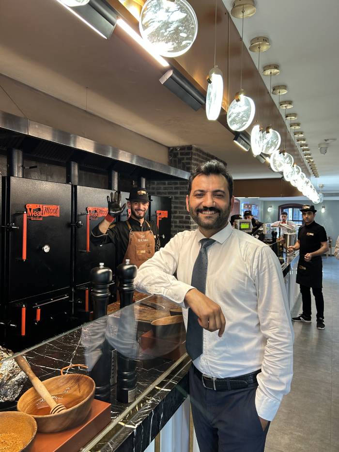 Burada etlerin 14-16 saat fırında pişirme süreleri var. 2-3 saat de sadece odun ateşinde tütsülenme süresi oluyor. Fırın dereceleri sabit, 50-60 derece arasında sürekli buharda kalıyor. Sunulan kuzu kol, kuzu incik, kuzu kaburga, kuzu boyun, dana kaburga ve dana brisket arasından ufak tadımlarla dilediğinizi seçebiliyorsunuz. Yağlı, yağsız oranı, kuzu, dana ayrımı misafire soruluyor. Deneyimli şefler konukları lezzet konusunda yönlendiriyor. Etler Balıkesir bölgesinden geliyor.