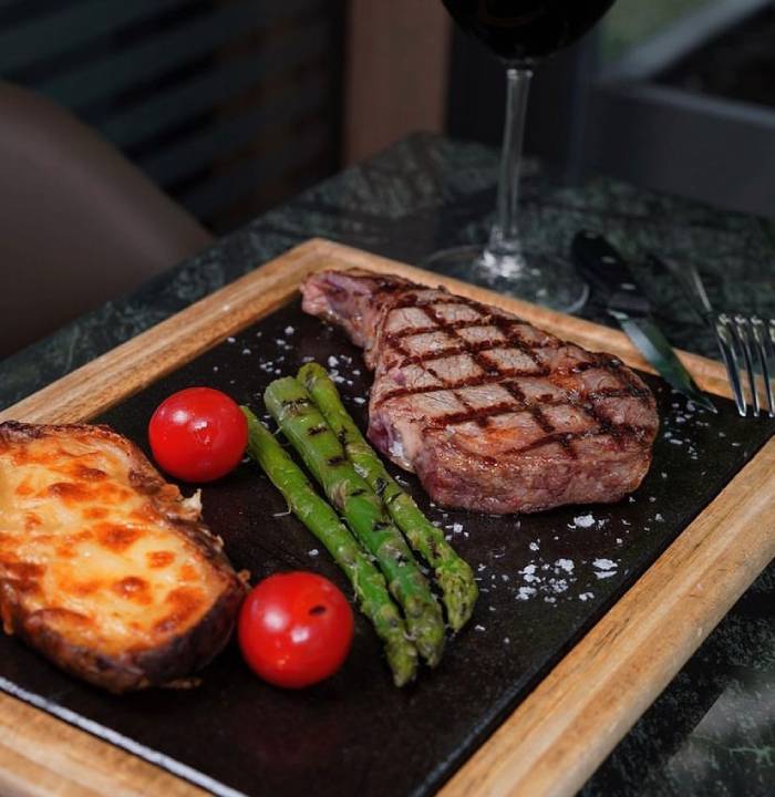 Eşsiz et lezzetlerinin yanı sıra geniş şarap menüsü, özel kokteylleri ve tatlı seçenekleri ile yemek deneyiminizi bir üst seviyeye taşıyor.