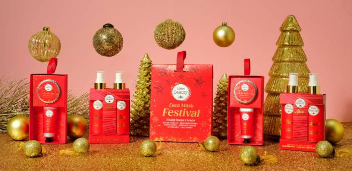 Bee Beauty’nin yeni yıl hediye setleri arasında; Festival yüz maskesi seti, Pure Wishes el krem seti, Orion dudak bakım seti, el kremi ve lip balm ikili set, Allure saç bakım seti ve Warm&Cozy banyo seti bulunuyor.