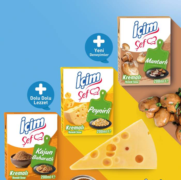 Türkiye’ de mutfak şeflerinin ve kendini şef gibi hissedenlerin tercihi, yeniliklerin öncüsü İçim Şef Krema’nın büyüyen krema pazarında yüzde 23 pay ile liderliğini sürdürdüğünü söyleyen Ak Gıda- İçim Süt’ün krema kategorisinden sorumlu Pazarlama Müdürü Tuğrul Çepni de şöyle devam etti: “Krema pazarının en yenilikçi markası olarak, liderliğimizi pazarda yine yepyeni bir kategori oluşturarak devam ettirmeyi amaçlıyoruz. Türkiye’de bir ilk olan Mantarlı, Peynirli ve Kajun Baharatlı krema çeşitlerimizi iki yıllık Ar-Ge çalışmaları sonucunda geliştirmeyi başardık. Girdiği yemeklerin lezzetini artıran yeni krema çeşitlerimizle pazar liderliğimizi pekiştirmeyi ve tüketicilerimize yepyeni soslu tarifler denemeleri için ilham vermeyi hedefliyoruz. Yeni çeşitlerimiz; sadece kadınların değil, yemek yapmayı seven erkeklerin de mutfakta adeta şef dokunuşu yapmalarını sağlayacak. Bu çeşitlerimizle, tüketicilerimiz beğenilen restoran lezzetlerini zahmetsizce ve keyifle artık evlerinde de hazırlayabilecek.”