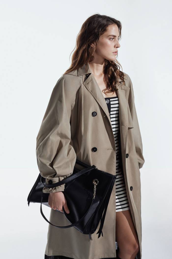 Bu yaklaşım, özgün bir trençkot, geniş paçalı kot pantolon, safari gömleği ve göze çarpan yeşil Miss M çantası gibi ikonik parçalar sunarak, geçici trendlerin ötesinde zamansız bir zarafetle bütünleşiyor.