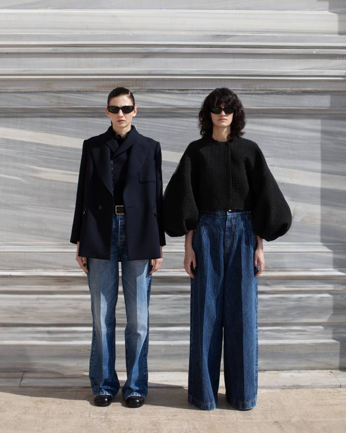 Maskülen çizgilerin de yer aldığı, zamanın ötesinde bir zarafete sahip Dice Kayek Sonbahar/Kış’23-24 koleksiyonunda, Boğaz’ın emsalsiz ruhunu yansıtan yün ve ipek flanelden paltolar, ceketler, yelekler, 30’lu yıllardaki gibi askılı olarak giyilebilecek yüksek belli pantolonlar, cigarette pantolonlar, mini etekler öne çıkıyor. Dice Kayek’in imzası haline gelen boyutlu kumaşlar, saten, ipek, kadife, brokar ve krep ve kumaşların yanı sıra el nakışı detaylar ve işlemeler dikkat çekiyor.