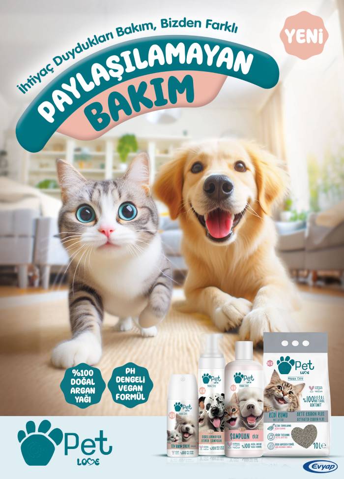Türkiye’nin lider kişisel bakım ve temizlik şirketi Evyap, sabunla başladığı hikayesine yepyeni bir kategori daha ekledi. Duru, Arko, Activex, Emotion, Blade, Evy Baby, Baby One gibi alanında güçlü markaları bulunduran Evyap, evcil hayvan bakım alanına, Pet Love markası ile dahil oldu. Pet Love Evcil Hayvan Bakım Ailesi, yüzde 100 doğal içeriğiyle dikkat çeken bir hijyen serisinden oluşuyor. Marka, kedi ve köpekler için durulanan şampuan ve durulanmayan köpük şampuanı, tüy bakım spreyi ve yağı, temizleme mendili, köpek eğitim pedi ve kedi kumundan oluşan geniş ürün portföyü ile evcil hayvanların ihtiyaçlarına uçtan uca çözüm üreterek tamamlanmış bir hijyen-bakım deneyimi sağlamayı hedefliyor.