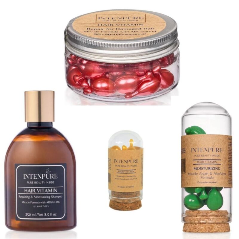 Inten Pure’ün ürünleri arasında; farklı saç tiplerine ve ihtiyaçlarına yönelik formüle edilmiş şampuan, yoğun bakım ve onarım sağlayan saç maskesi, 10’lu ve 50’li paket seçenekleri ile sunulan saç vitamini kapsülleri yer alıyor.