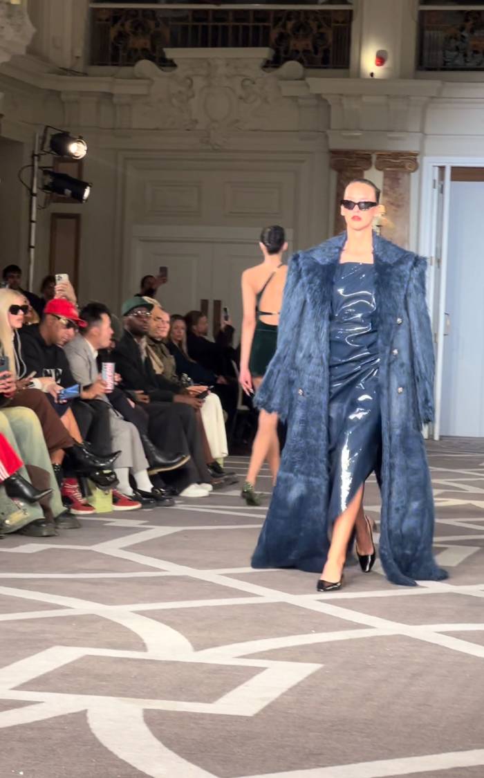 Ssiyahın asaleti ve kürk detaylarının lüks bir dokunuş kattığı tasarımlar ön plana çıkıyordu. Özellikle geniş omuzlu, uzun paltolar koleksiyonun dramatik etkisini artırırken, klasik ve maskülen çizgilerin modern bir yorumla sunulması, cinsiyet kalıplarını yıkan bir moda anlayışını yansıtıyordu. Bu parçalar, hem şıklığı hem de gücü simgelerken, aynı zamanda cesur bir moda diliyle konuşuyordu. Siyahın derinliği ve kürkün lüks dokusu, tasarımların zamansızlığını vurguluyordu.