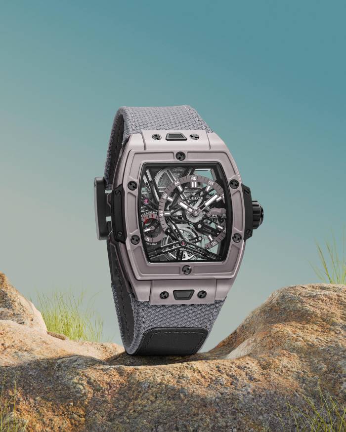 Hublot Spirit of Big Bang SORAI, SORAI’ı desteklemek üzere yaratılmış dördüncü saat ve ilk Spirit of Big Bang modeli. 42 mm kasası, Hublot tarafından SORAI için gergedan derisinin ayırt edici rengini yakalamak amacıyla tasarlanıp ilk kez Big Bang Unico SORAI 2023’te görülen, mikro kumlanmış ve cilalanmış “sıcak gri” seramikten yapıldı. Gri kumaş kayışı bulunan saat, siyah kauçuk üzerine çarpıcı gri ve bej kamuflaj desenli ikinci bir kayışla sunuluyor. HUB6020 üretim kalibresi; beş günlük güç rezervine sahip, el yapımı, iskelet görünümüne büründürülmüş bir tourbillon. Bu da sadece 30 adet üretilmiş saate, iki safir kristal arasında durarak saat 3 konumundaki zaman göstergesi ile saat 8 ile 9 arasındaki güç rezervi göstergesini hassas bir şekilde dengeleyen asimetrik bir ekran kazandırıyor.