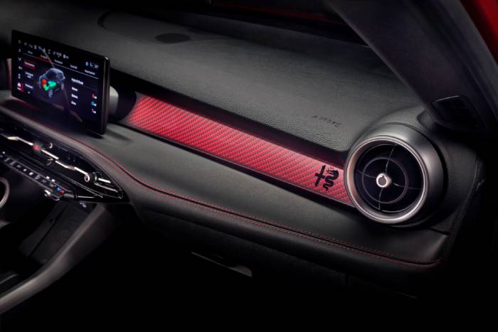Tonale Tributo Italiano özel serisinin sportif ruhu, iç mekân tasarımında da kendini gösteriyor. Dikkat çeken yeni siyah deri spor koltuklar, kırmızı renk detaylarıyla estetik bir görünüm sunuyor. Ön koltuk başlıklarında ise serinin özgün logosu yer alıyor. Gösterge paneli, koltuklar ve kapı panellerini süsleyen kırmızı dikişler, iç mekânın şıklığını artırıyor. Serinin tasarımsal öğeleri arasında, Alfa Romeo’nun ikonik logosunu taşıyan karbon gösterge paneli ambiyans aydınlatması ve alüminyum eşik çıtası da bulunuyor.