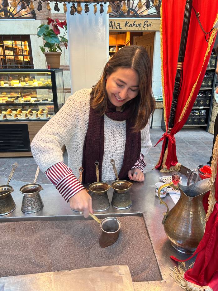 Bu özel organizasyonda biz de tarihte bilinen ilk kahvehaneyi keşfettik. Lezzetli ikramlar eşliğinde müzenin tarihini dinledik ve ardından kumda kahve yapmanın prensiplerini öğrendik. Beta İstanbul Şube Müdürü Hatice Uğur ile bu özel günün anısına hatıra fotoğrafı çektirmeyi de ihmal etmedik.