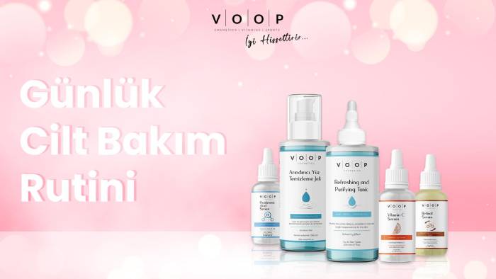 Cilt bakımınızda kullandığınız farklı içerikli ürünler ile cilt bariyerinizi yorabilir ve kuruluk gibi sorunlar yaşayabilirsiniz. Yaşla birlikte cildiniz su kaybeder, incelir ve dış etkenlere karşı daha savunmasız olur. Yani yaş ve dış etkenlerden ötürü cilt tipiniz de değişebilir. Bu nedenle zaman zaman cilt analizi yaptırmalısınız. Cildinizin ihtiyacına uygun ürünler kullanmak en önemli adımınız olmalı. Cilt bakımında ilk ve en etkili adım cilt temizliğidir. Bunun için ilk olarak Voop Aloe Vera ve Papatya Özlü Yüz Temizleme Jel ile yüzünüzü nazikçe yıkayın. Voop Aloe Vera ve Papatya Özlü Yüz Temizleme Jeli cildi temizlerken yatıştırıcı etkisiyle de ferahlık hissi veriyor. Sonraki adımda Voop Gözenek Arındırıcı ve Canlandırıcı Tonik ile çift temizlik yapın. Derinlemesine temizlik ile gözenekleri arındırırken cilde canlılık kazandıran Voop Gözenek Arındırıcı ve Canlandırıcı Tonik, çift temizlik rutini için ideal bir seçenek sunuyor. Daha temiz ve canlı bir cilt için öneriliyor.