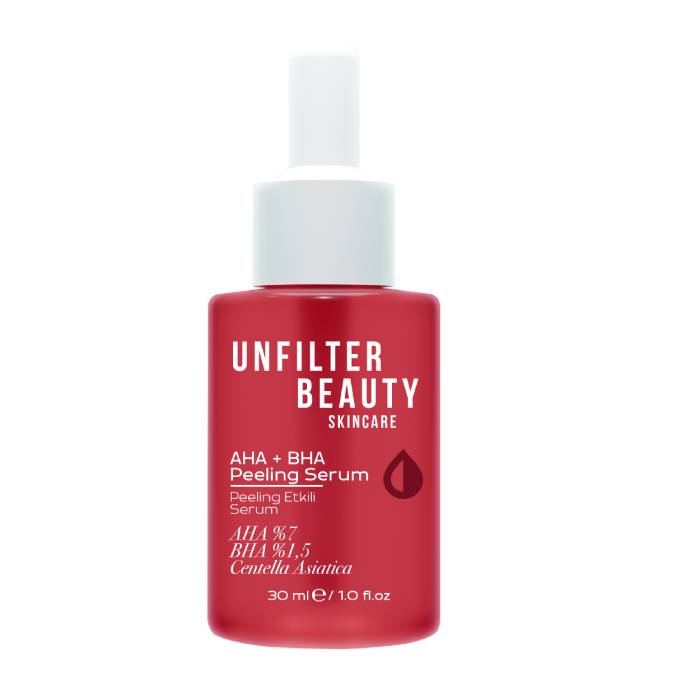 Ölü deri tabakasını nazikçe arındırarak cildin canlı bir görünüme kavuşmasını destekleyen Unfilter Beauty Peeling Serum, AHA ve BHA içeriğiyle kullananların vazgeçilmezi olmaya aday! Yetenekleri bununla sınırlı kalmayan serum, içeriğindeki centella asiatica sayesinde akne ve lekeleri azaltmaya yardımcı olurken, saccharide isomerate ile de cildin nem kaybını en aza indiriyor.