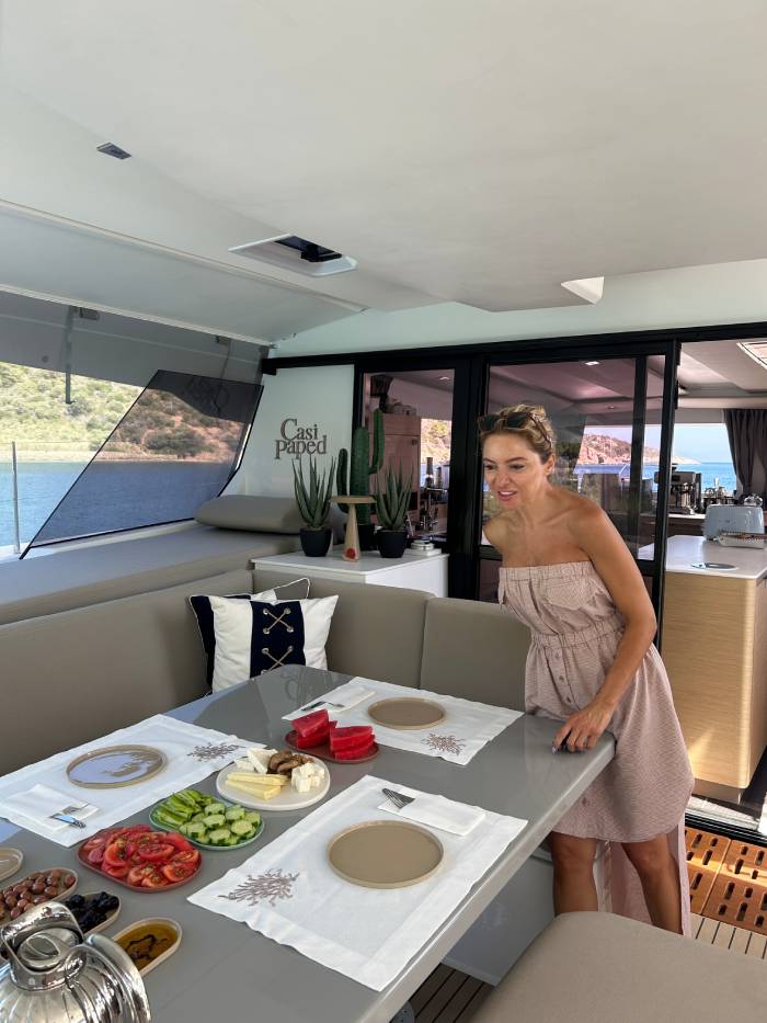 Çocukluk anılarından gelen bir tutku, eşle paylaşılan bir hayal ve sonunda denizi ev kılan bir yolculuk… Casi Paped katamaranında yaşanan anılar, keşfedilen koylar ve yıldızların altında kurulan sofralar, Şebnem Celepoğlu Dindar ve Cemal Dinar çifti için çok özel. Çift, yaz davetlerine de tekneden katılmayı tercih ediyor.