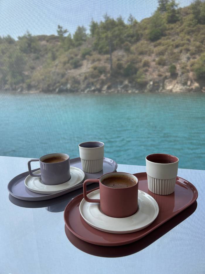 Deniz üstünde olmak bana her zaman ilham veriyor. Özellikle sessizlik ve dinginlik içinde zihnim çok daha berrak oluyor. Bazen dalgaların ritmi bir desen gibi aklımda şekilleniyor, bazen gökyüzünün renkleri yeni tasarımlara ilham veriyor. Yazmak, notlar almak, yeni fikirler üretmek için deniz, en güçlü ilham kaynağım. Çoğu zaman atölyede hayata geçirdiğim seramiklerin renklerinde ve dokularında bu yolculukların izlerini bulabilirsiniz.