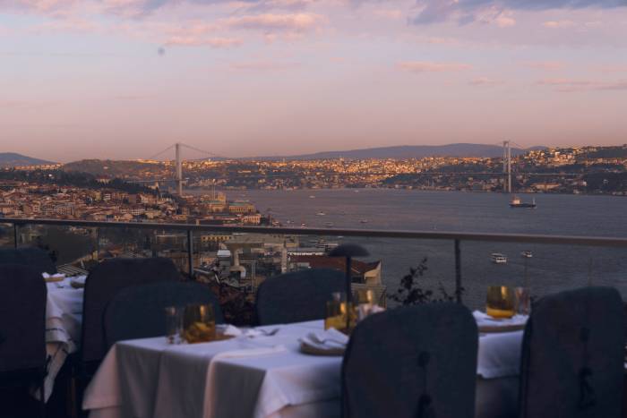 Topkapı Sarayı’ndan, Ayasofya’ya… Taşkışla’dan Kız Kulesi’ne… İstanbul’un tüm renklerine ve ışıltısına karşı şehrin ritmini yeniden belirleyen Mesai’de, gün batımında gökyüzünün altın tonlarına karşı başlayan keyifli saatler, lezzetli yemekler eşliğinde ayrıcalıklı bir ambiyansa dönüşüyor. Dekorasyonunda ince bir mimari zevkin yansıdığı restoranda özenle tasarlanan iç mekân elegant ve sıcak havasıyla beğeni topluyor. Cam tavanın gökyüzüyle kurduğu görsel bağ konukları daha ferah ve daha davetkâr bir atmosferin içine çekiyor. Şık aydınlatmalar, göz alıcı ihtişamlı bir bar, özgün tablolar, zarif kadehler, ince düşünülmüş detaylar, lüks dokunuşlar… Eşsiz manzarasına karşı keyifli bir gece vadeden Mesai, zarif tasarımı ve enerjik ambiyansıyla öne çıkıyor.