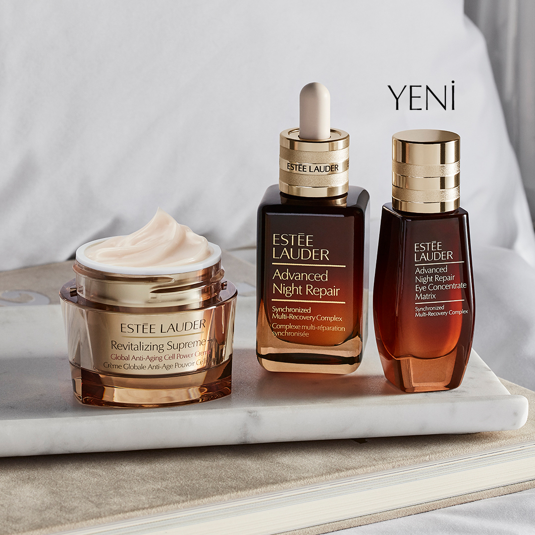 Estée Lauder şimdi gözler için yeniden tasarlanan Chronolux™ Power Signal hızlı onarım teknolojisi ve yenilenen gençliği ortaya çıkaran formülü ile Advanced Night Repair Eye Concentrate Matrix Synchronized Multi-Recovery Complex Göz Kremini sunuyor. Yeni 360° Mesh Matrix Teknolojisi, mikro hareketlere ve mimik çizgilerine dolgunlaştırma desteği sağlar. Yeni özel tasarımlı criyo-çelik aplikatörü ile ürün uygulandığında hassas göz çevresindeki cilt dokusu anında 2°C’ye kadar soğutulur. Gündüz ve gece kullanıldığında cilt daha sıkılaşmış, daha yumuşak ve pürüzsüz hissedilir. Göz altı çevresindeki tüm çizgi ve kırışıklıklar, kaz ayaklarının ve kaş arasında yer alan ‘11 çizgileri’nin görünümü azalır, gözler canlanmış, diri ve güçlü bir görünüme sahip olur.