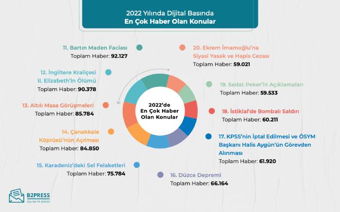 2022’de dijital basında en çok ele alınan ilk 10 konu ve toplam haber sayıları